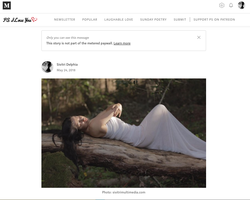 Poetry for Medium – PS I Love You section.