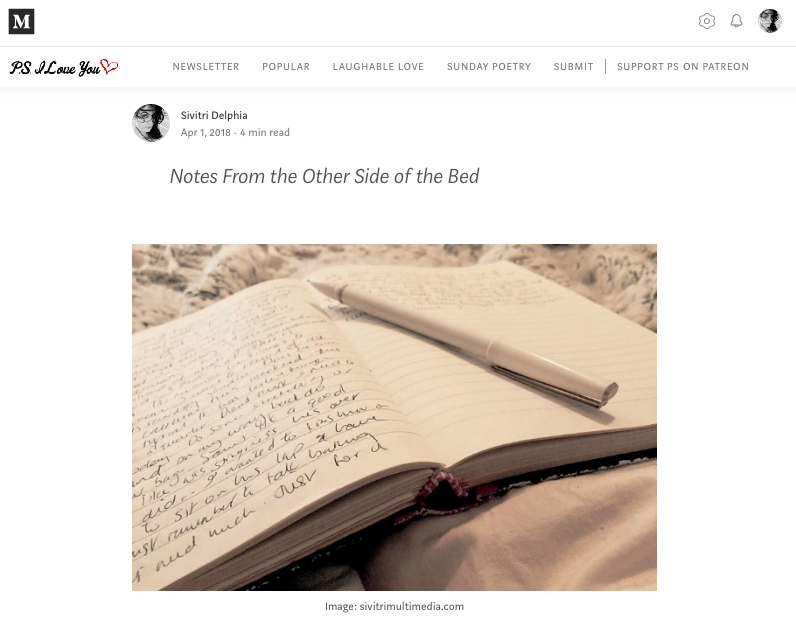 Article for Medium – PS I Love You section. Notes from the Other Side of the Bed. medium.com