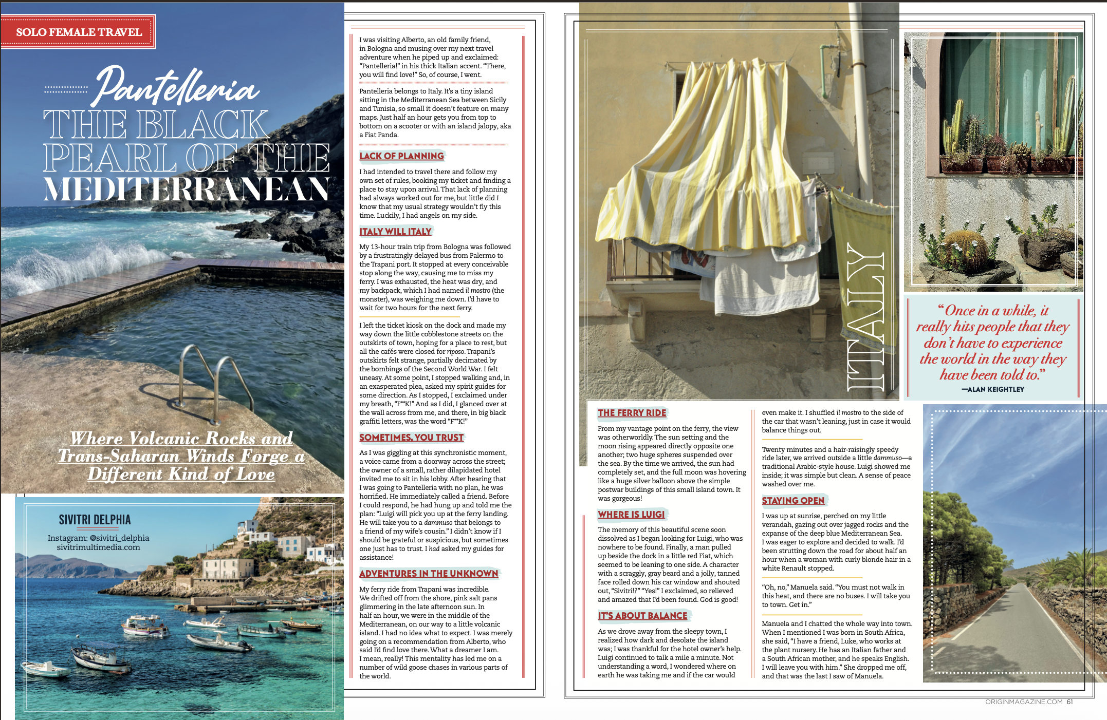 Origin Magazine - 3-page Travel Feature (Pantelleria), Winter 2026 Print Issue 63, USA, UK & Europe Distribution originmagazine.com
